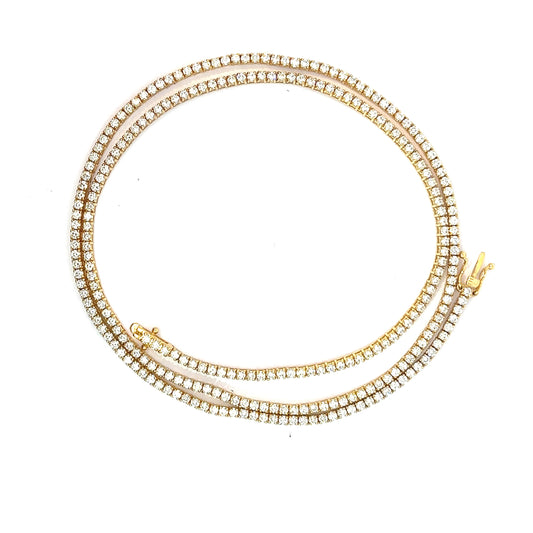 14kt Yellow Gold Diamond Tennis Chain 22" 3ptrs 7.20ctw