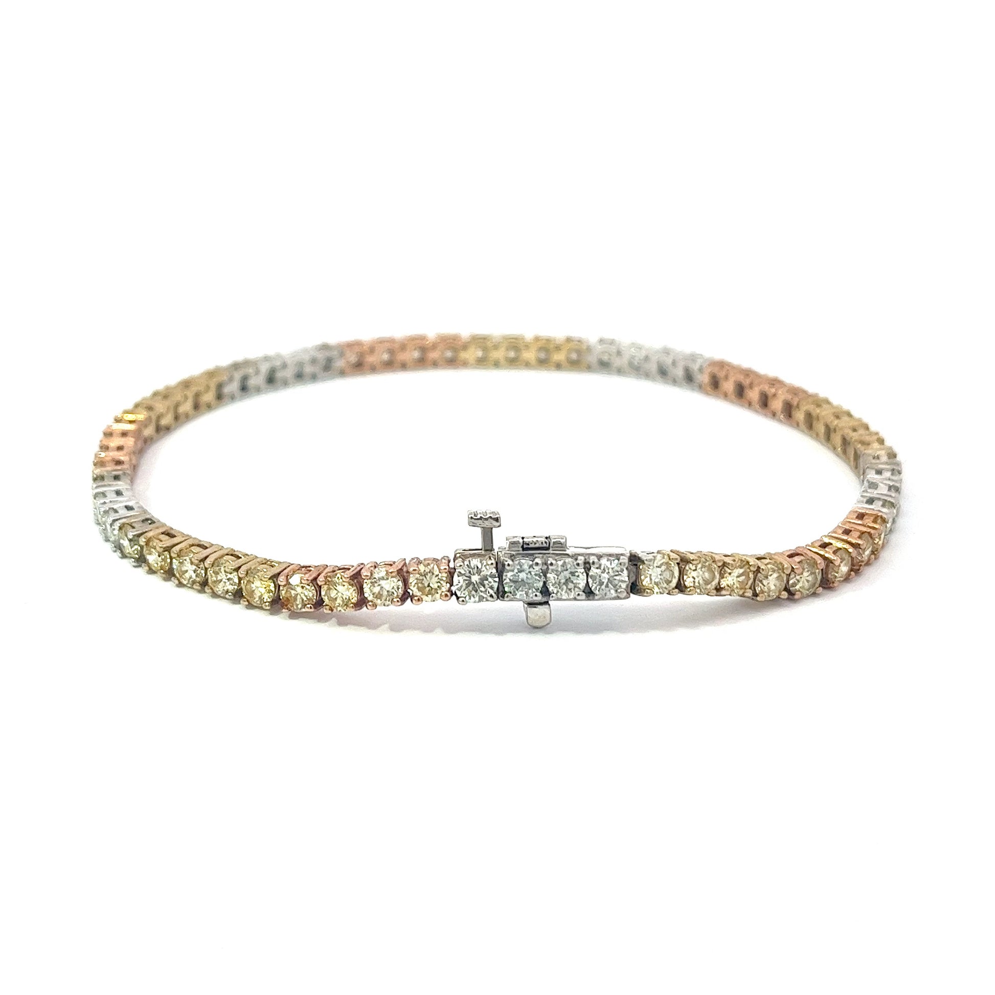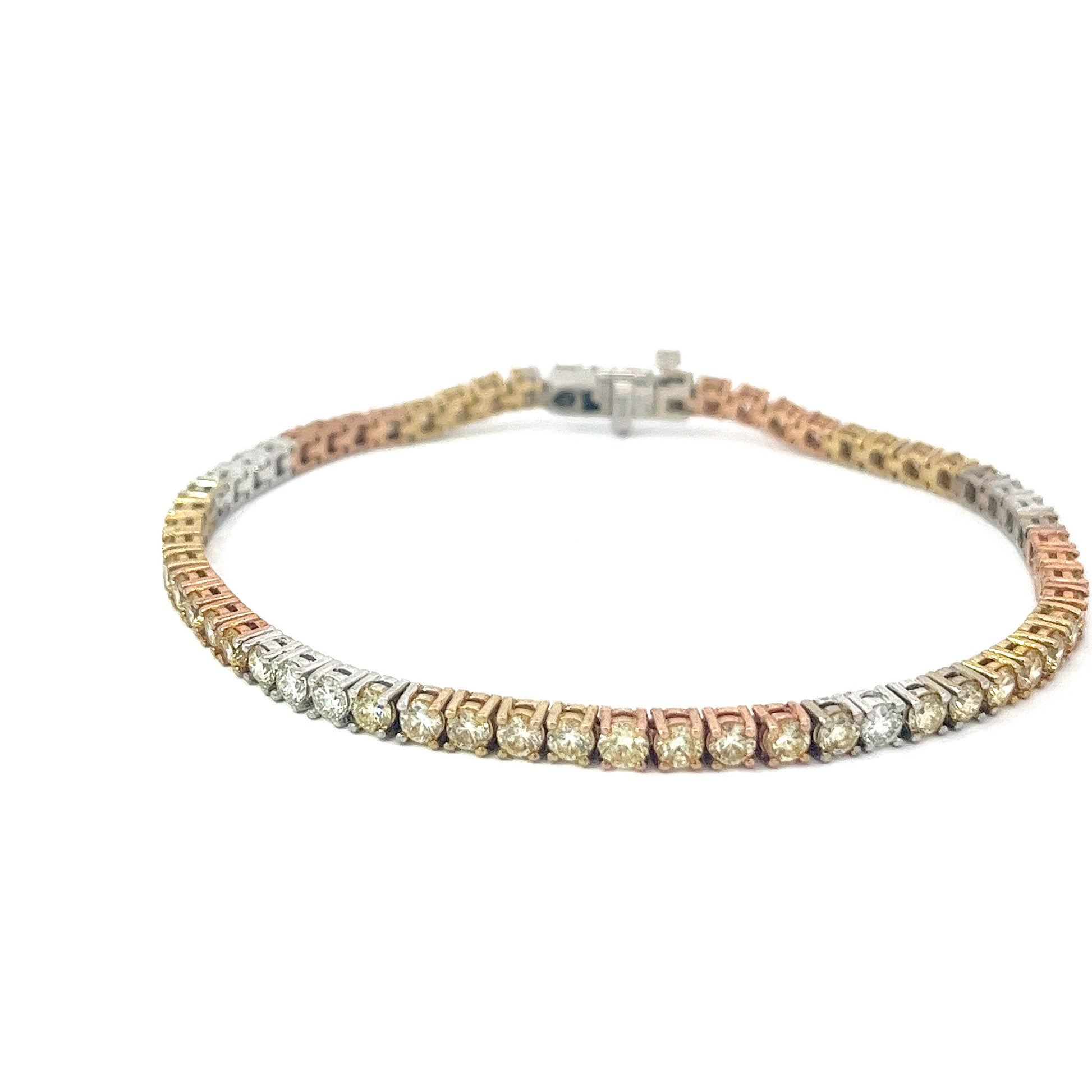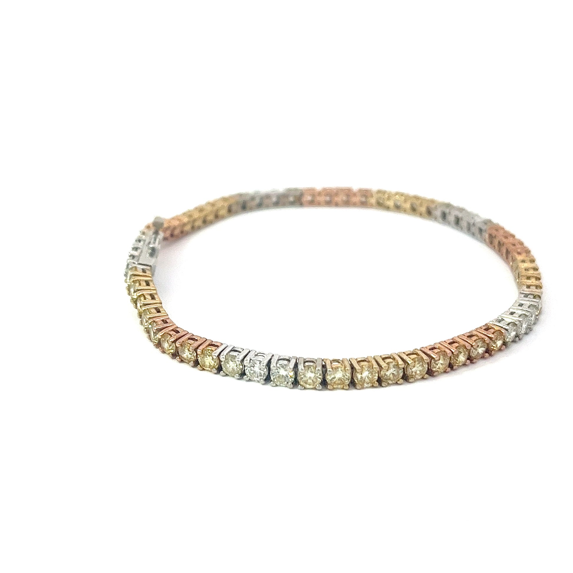10KT Tri-Color Gold 8.06CT Diamonds Tennis Bracelet 8.5 Inches (10 pointers each)
