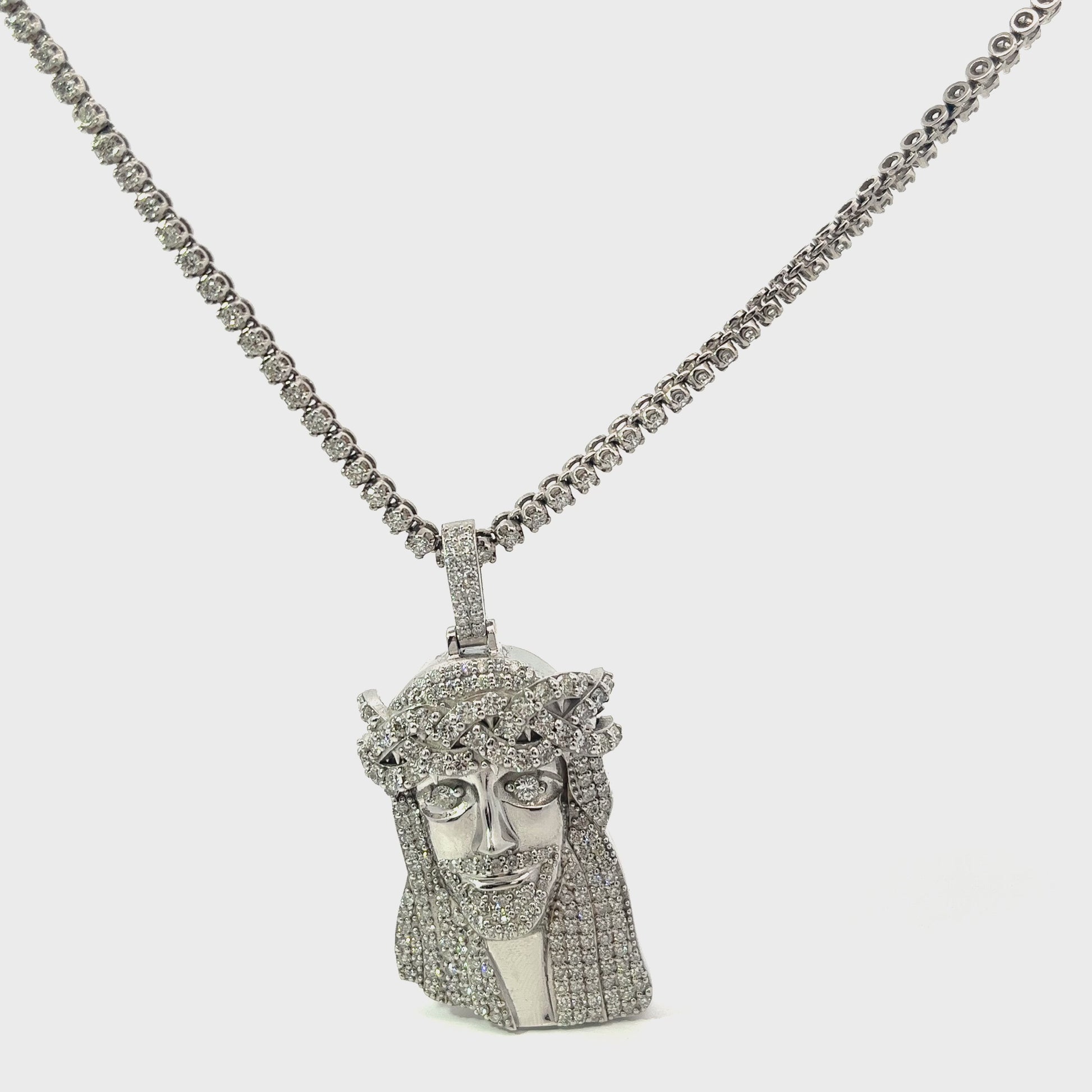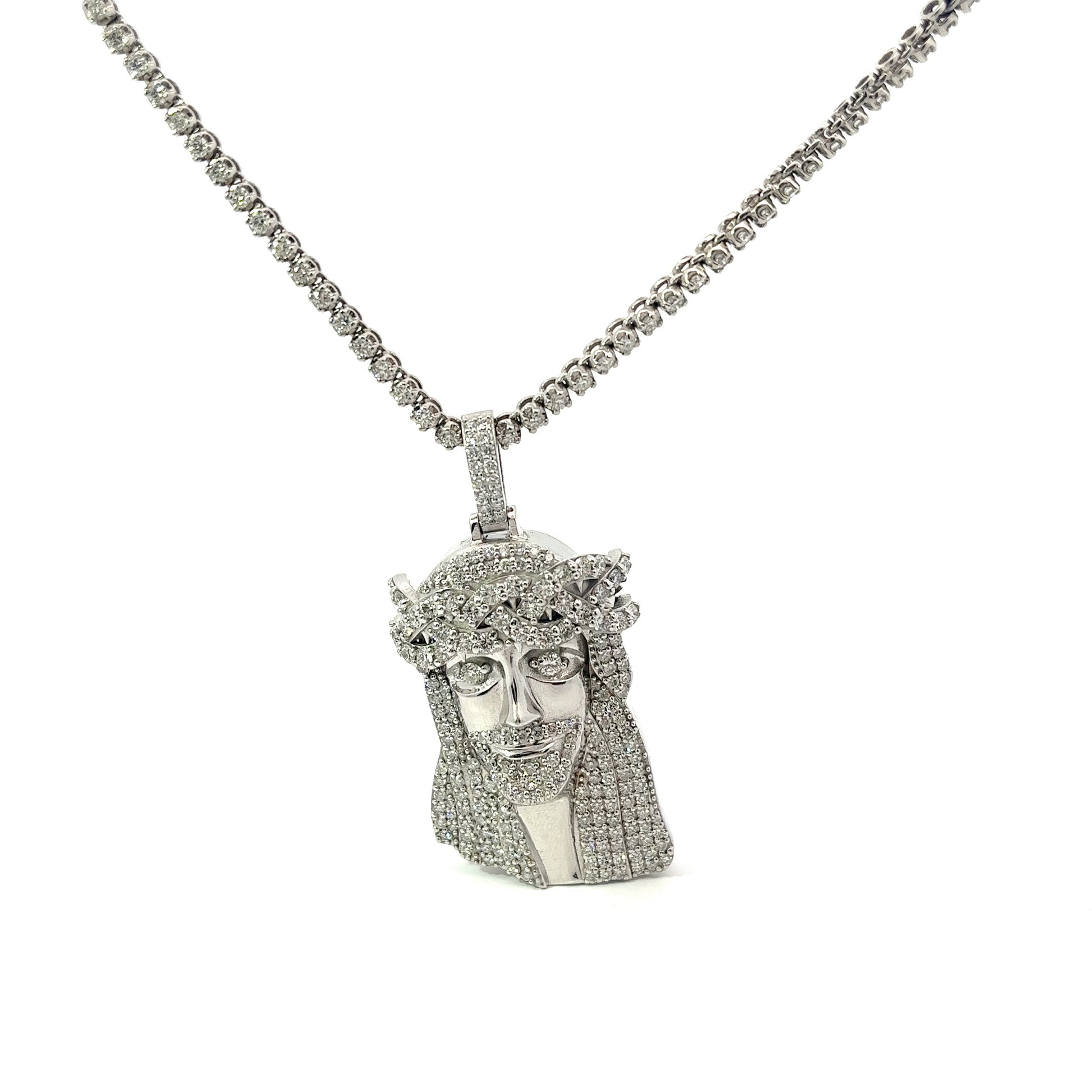 10kt White Gold Diamond Jesus Pendant 4.50ctw